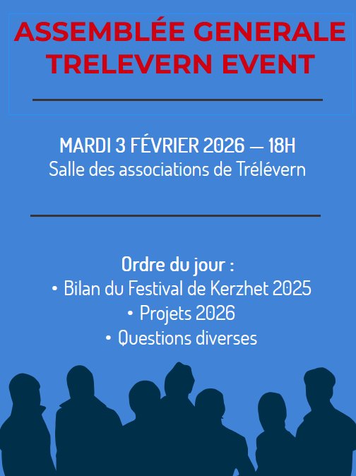 L'association TRELEVERN EVENT (qui a organisé avec succès le festival de Kerzhet cet été dans nos commerces) invite tous les Trelevernais qui le souhaitent à l'Assemblée Générale de l'association qui se tiendra le Mardi 3 Février 2026 à 18h, à la salle des associations.