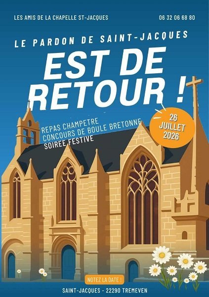La grande fête de Saint Jacques fait son retour. A la suite du pardon le matin, repas le midi, concours de boules, fin de journée musicale aux abords du Siam. Ambiance festive et chaleureuse assurée !