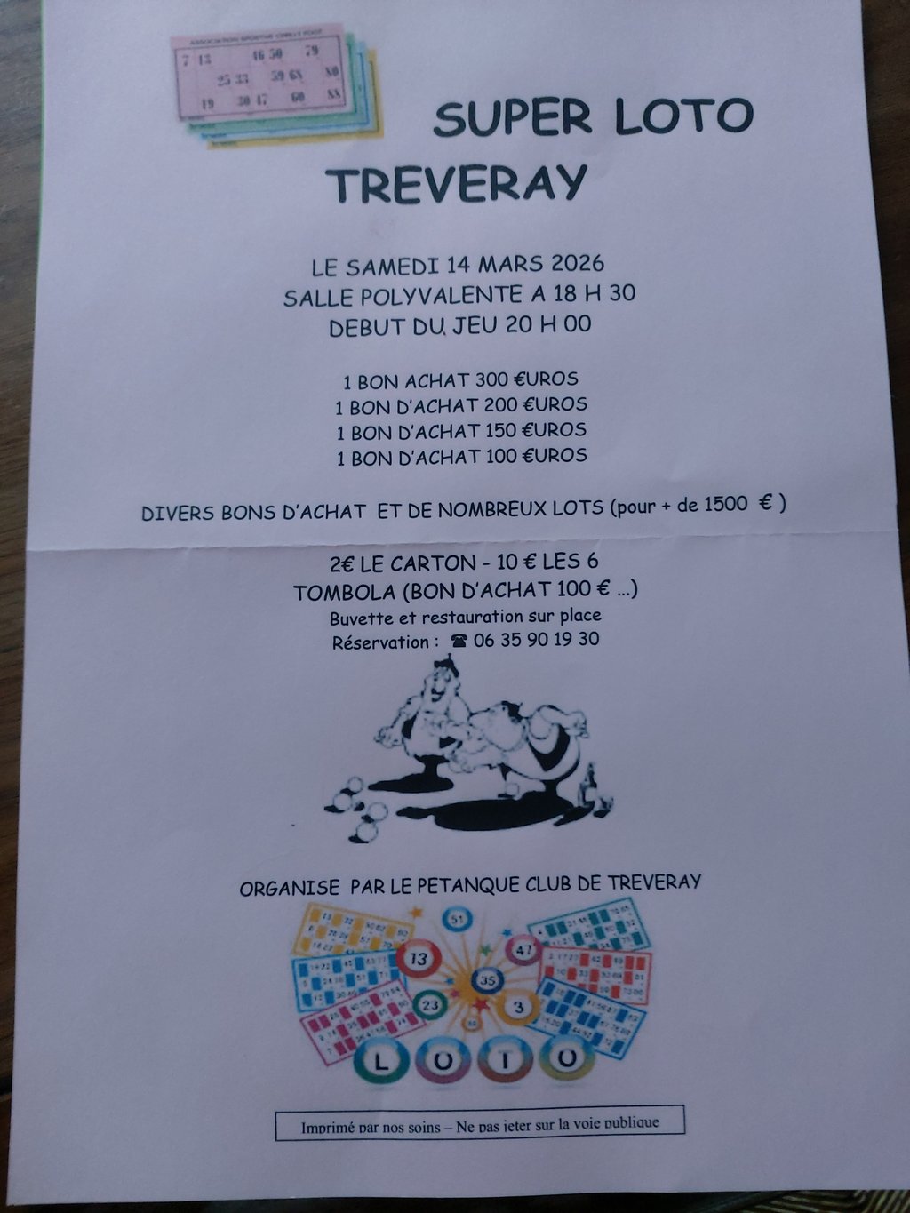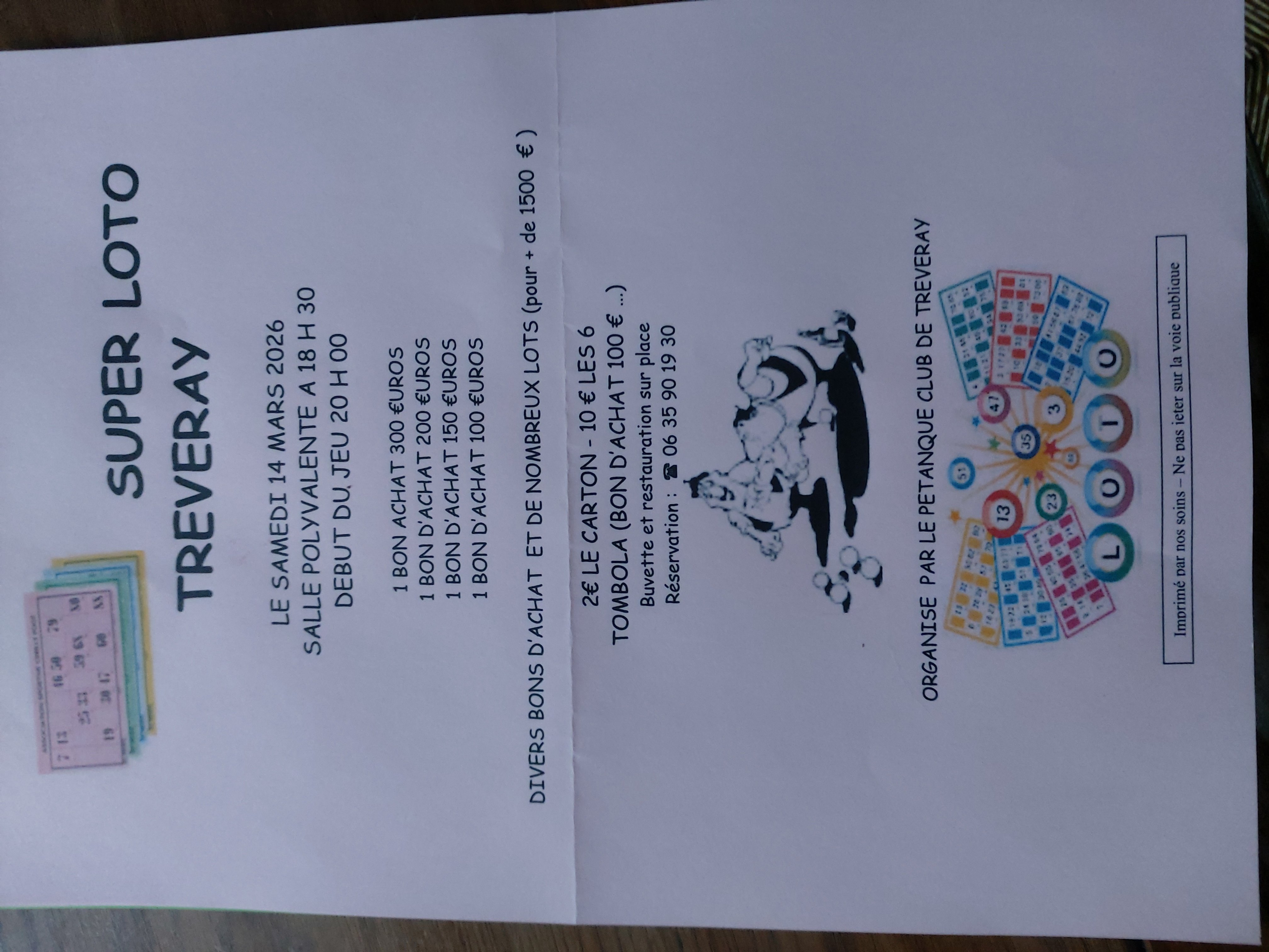 Loto organisé par le pétanque club de TRÉVERAY