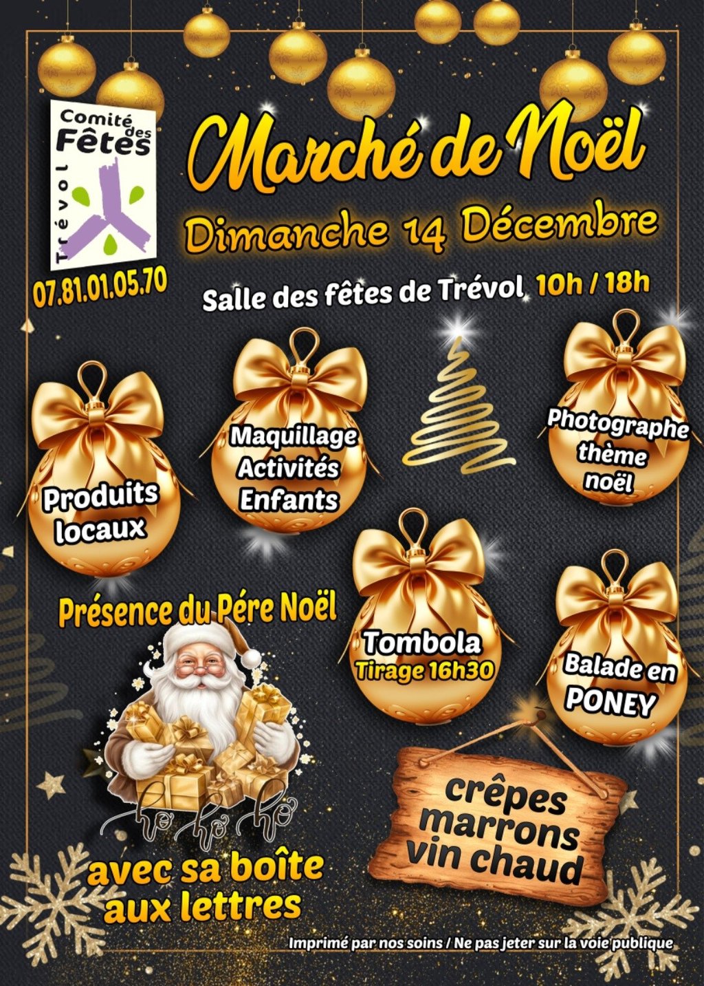Nous organisons notre marché de Noël le dimanche 14 décembre de 10h à 18h, à la salle socioculturelle de TREVOL et en extérieur.
