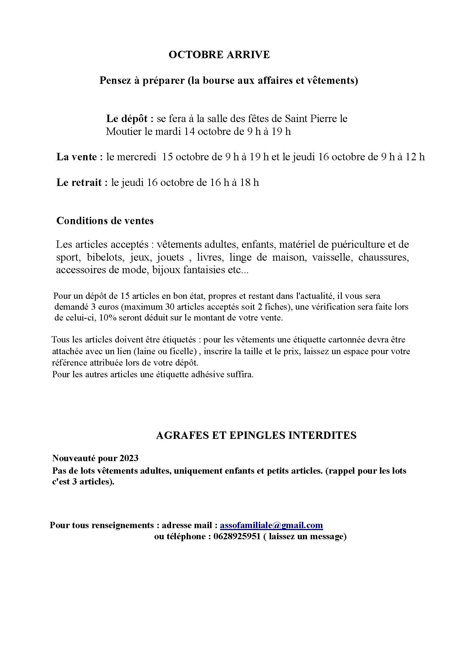 âčïž Renseignements au 06.28.92.59.51 ou assofamiliale@gmail.com