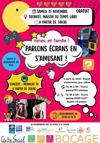 Stands, jeux vidéos, tournoi gaming FIFA, tournoi gaming Mario Kart, concert.