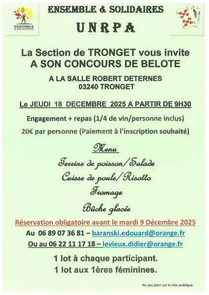 Concours de Belote organisé par l'UNRPA, avec de nombreux lots à gagner.