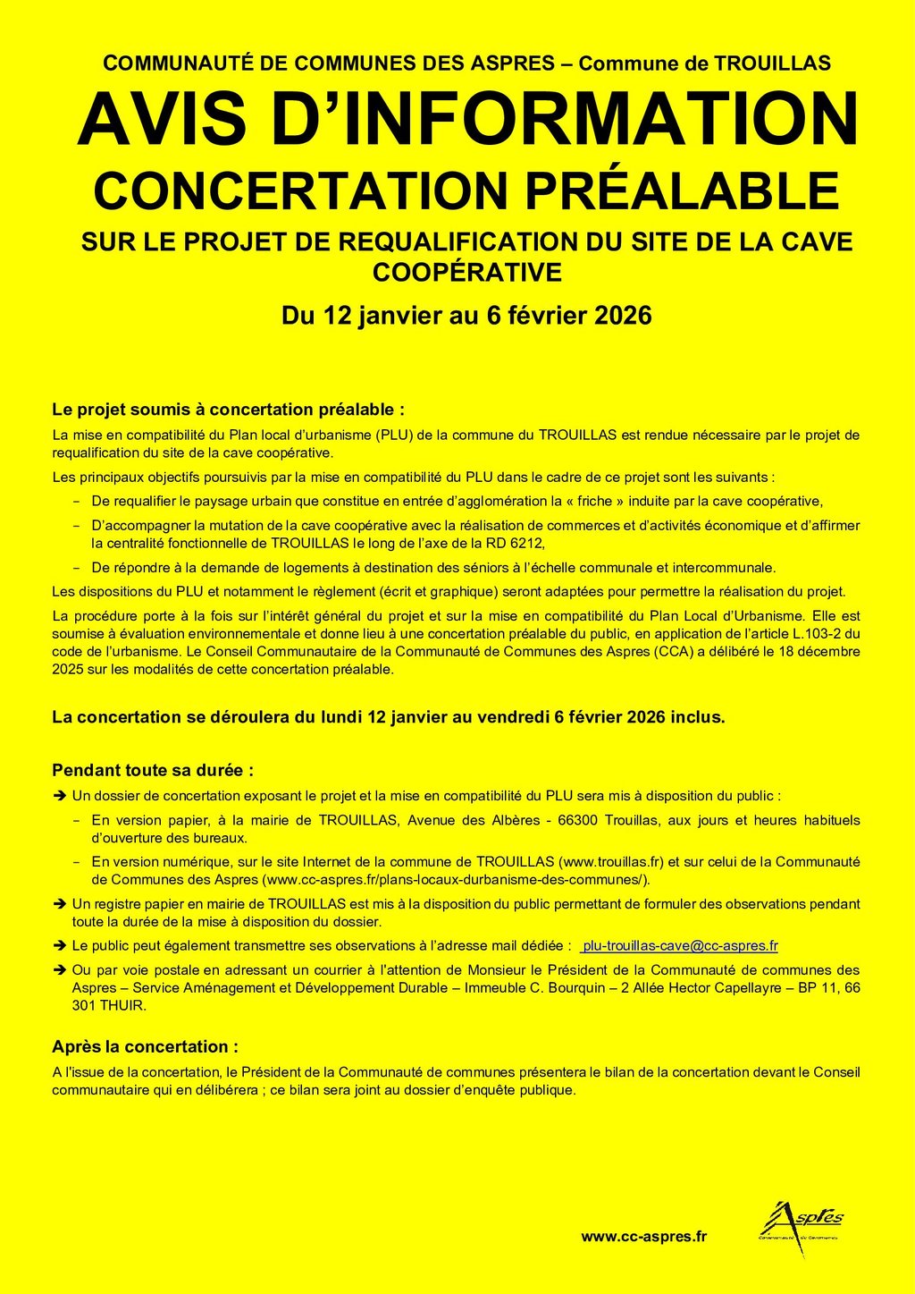 CONCERTATION PRÉALABLE DU LUNDI 12 JANVIER AU VENDREDI 6 FÉVRIER 2026