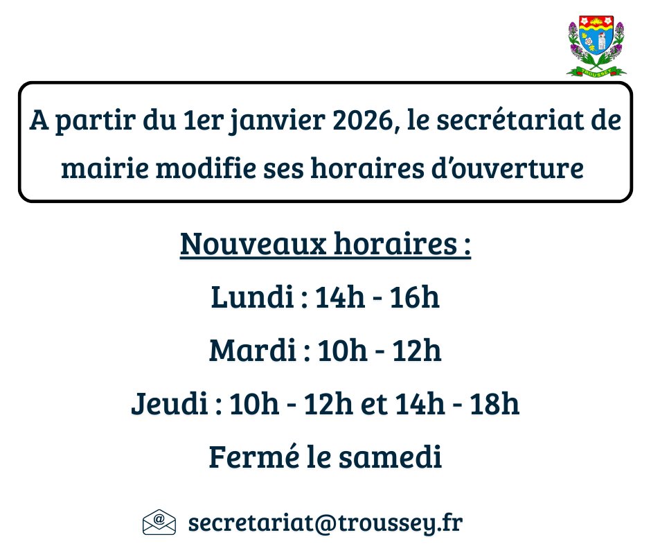 NOUVEAUX HORAIRES D'OUVERTURE DU SECRÉTARIAT DE MAIRIE