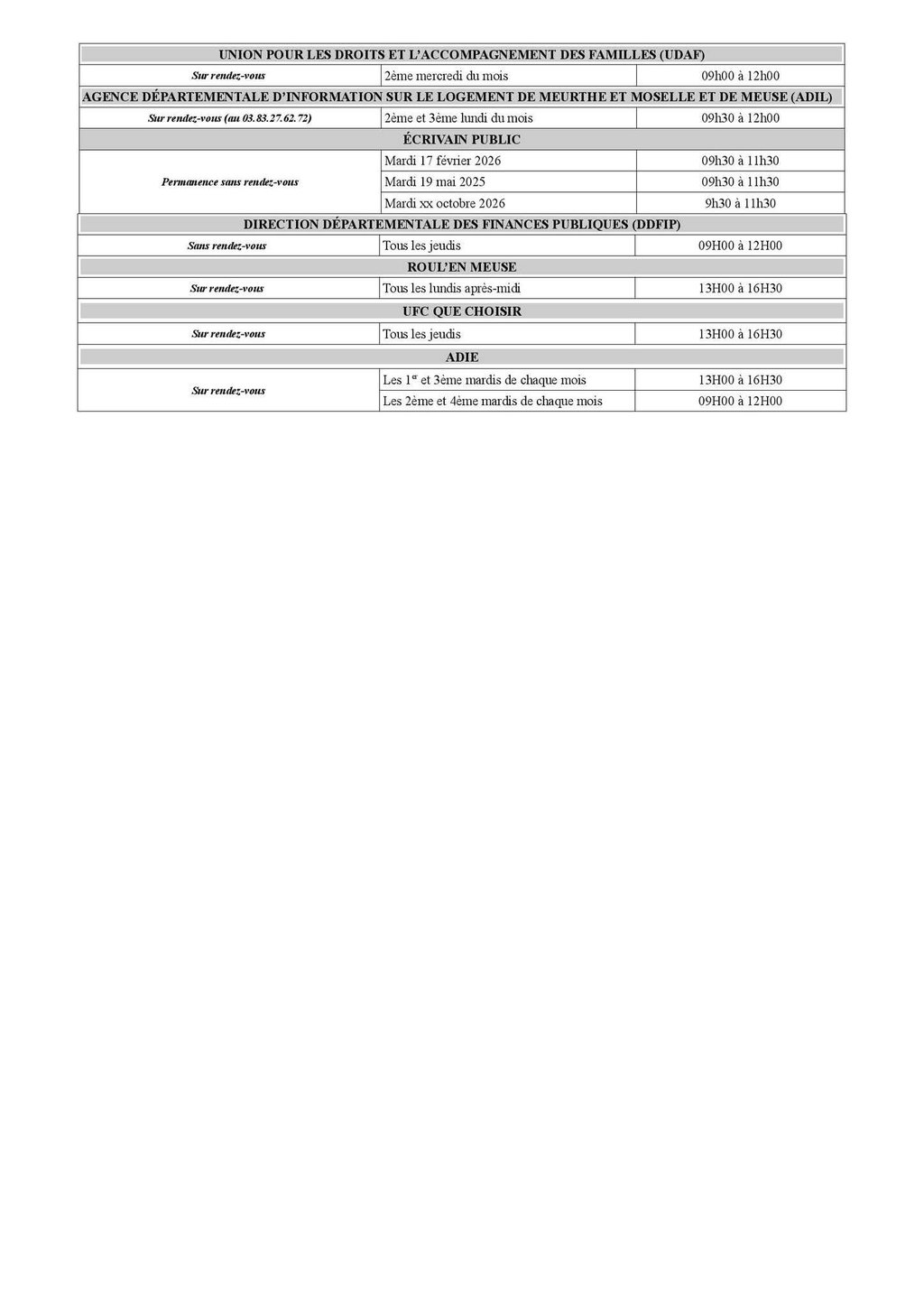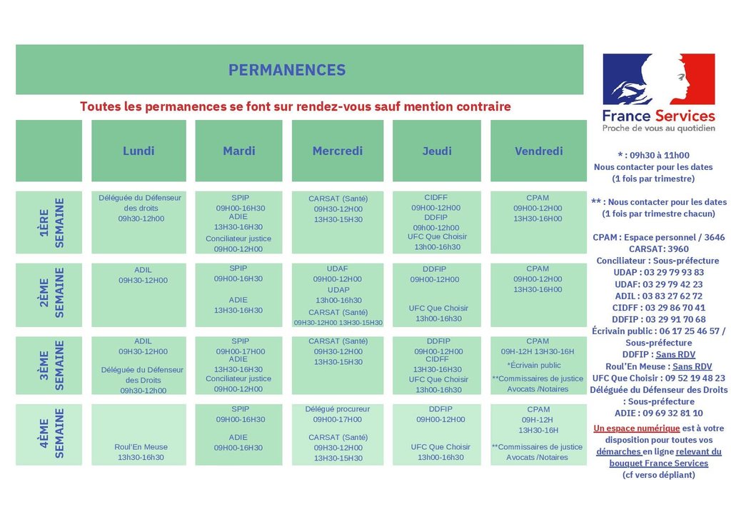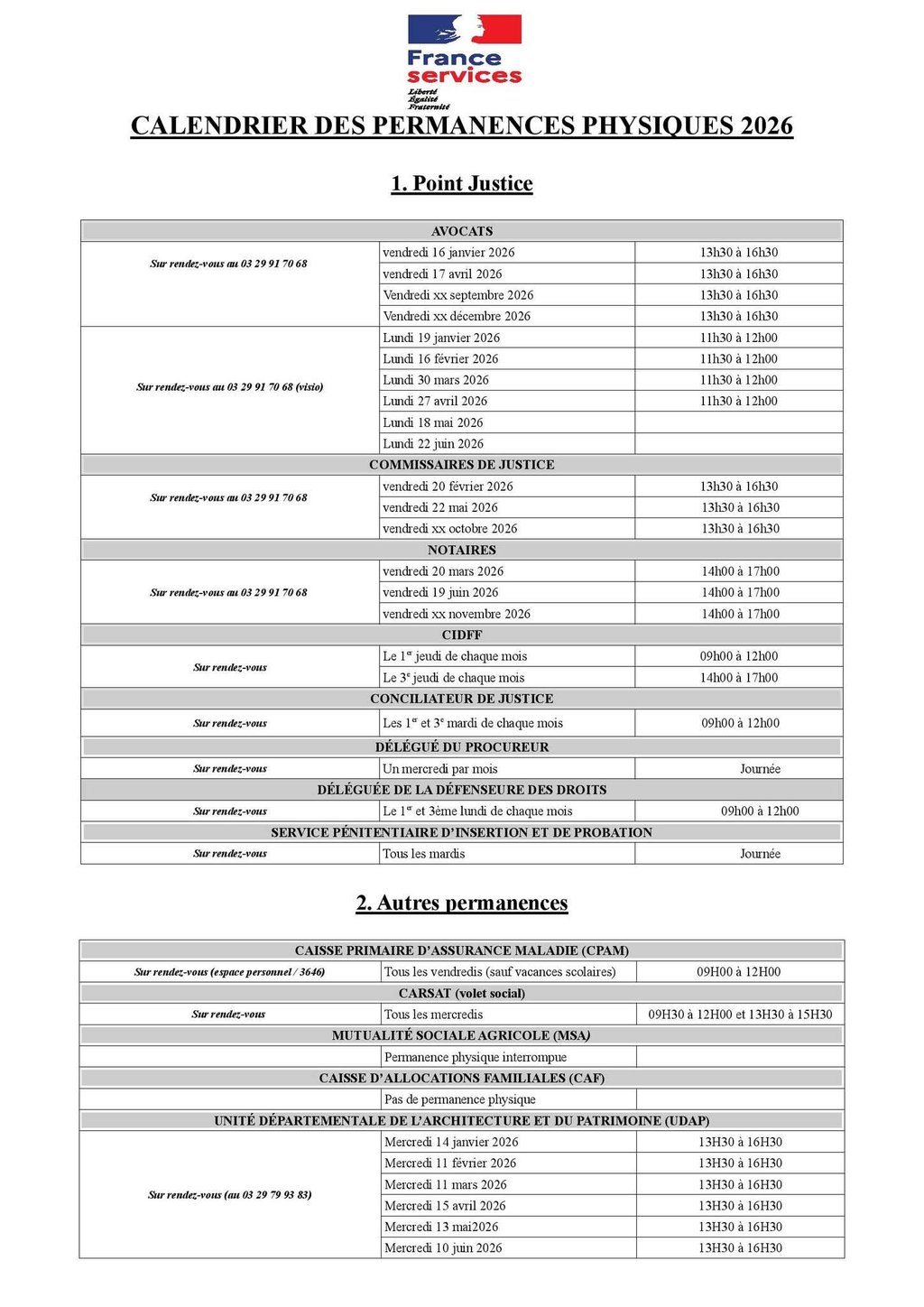 FRANCE SERVICES - CALENDRIER DES PERMANENCES PHYSIQUES