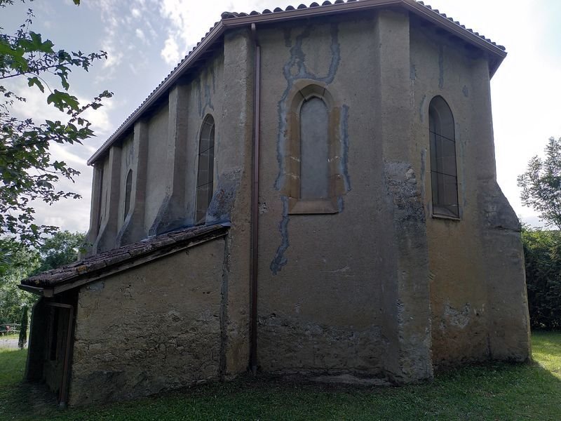 L’ancienne église, qui portait la même dédicace, se trouvait à l'emplacement de l'actuel cimetière. Elle est également citée en 1110 parmi les églises usurpées aux chanoines de Saint-Sernin de Toulouse, aux côtés de celles de Saint-Christaud et de Sainte-Marie de Pontis.