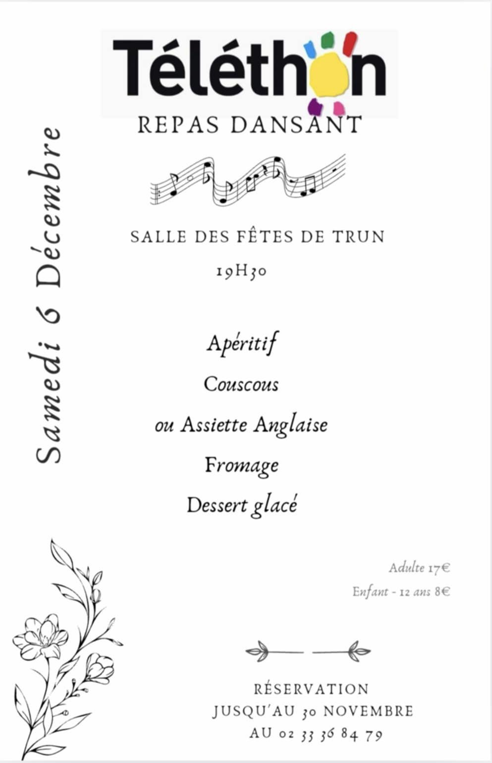 Repas dansant organisé en faveur du Téléthon le samedi 06 décembre 2025 à Trun.