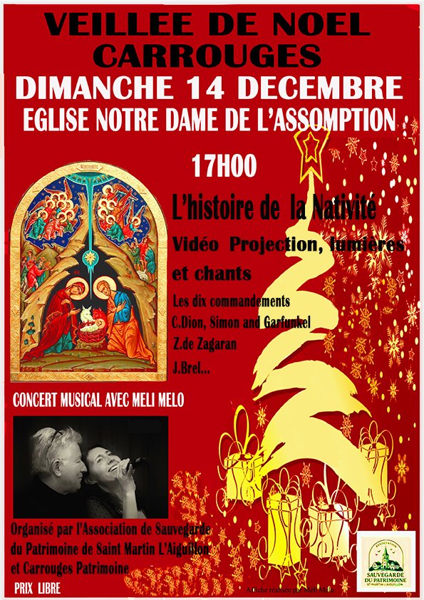 VEILLEE DE NOEL "L'HISTOIRE DE LA NATIVITÉ" DIMANCHE 14 DÉCEMBRE À 17H ÉGLISE NOTRE DAME DE L'ASSOMPTION À CARROUGES