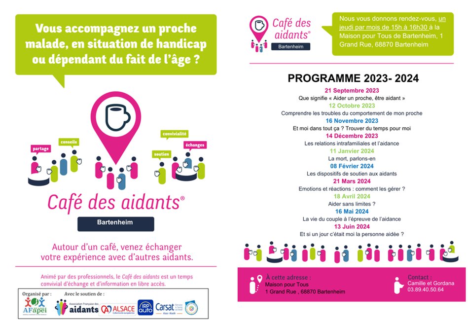 L'AFAPEI Sud Alsace organise un Café des Aidants à Bartenheim (aidants non-professionnels uniquement)