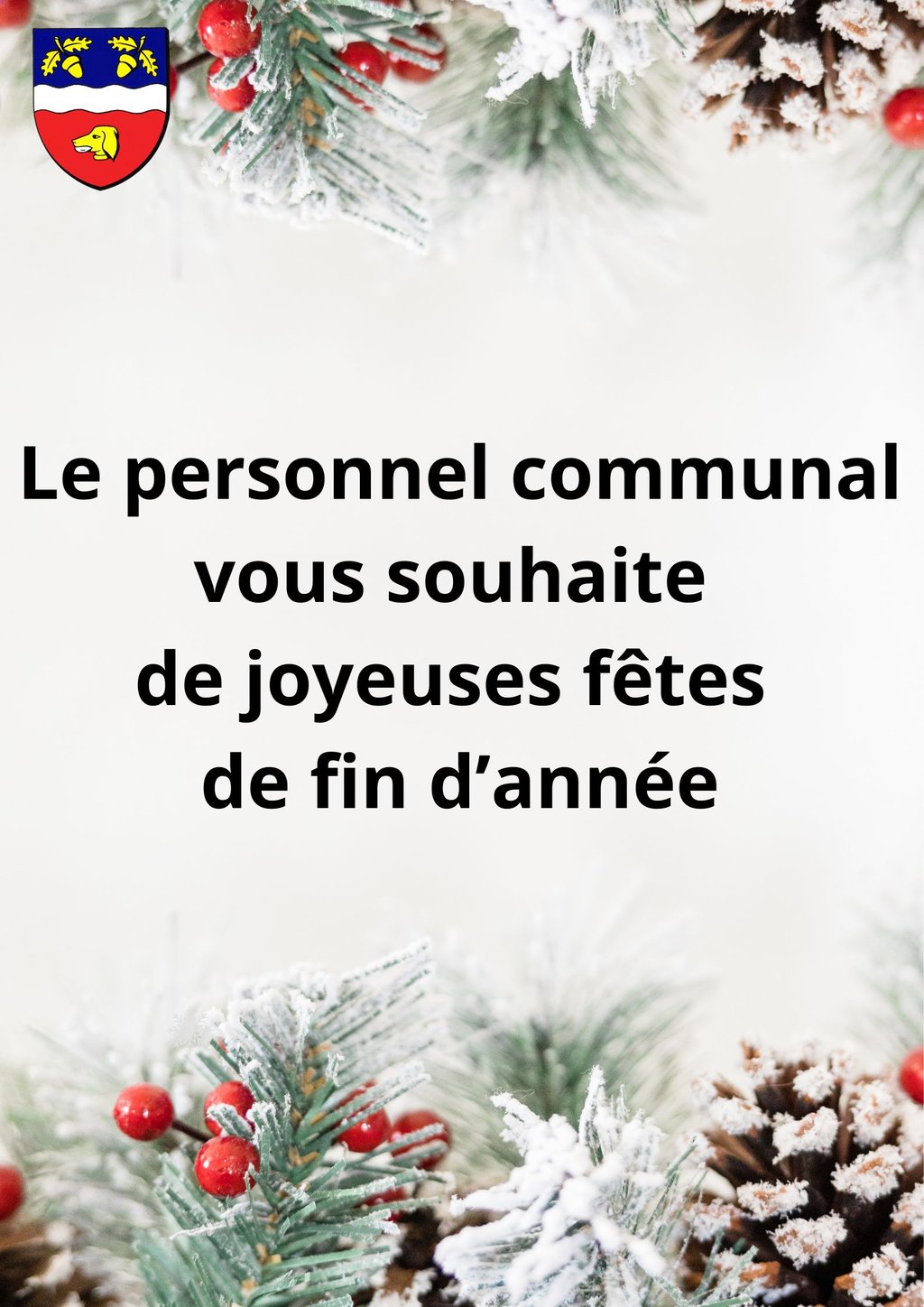 Le personnel communal vous souhaite de joyeuses fêtes de fin d'année.