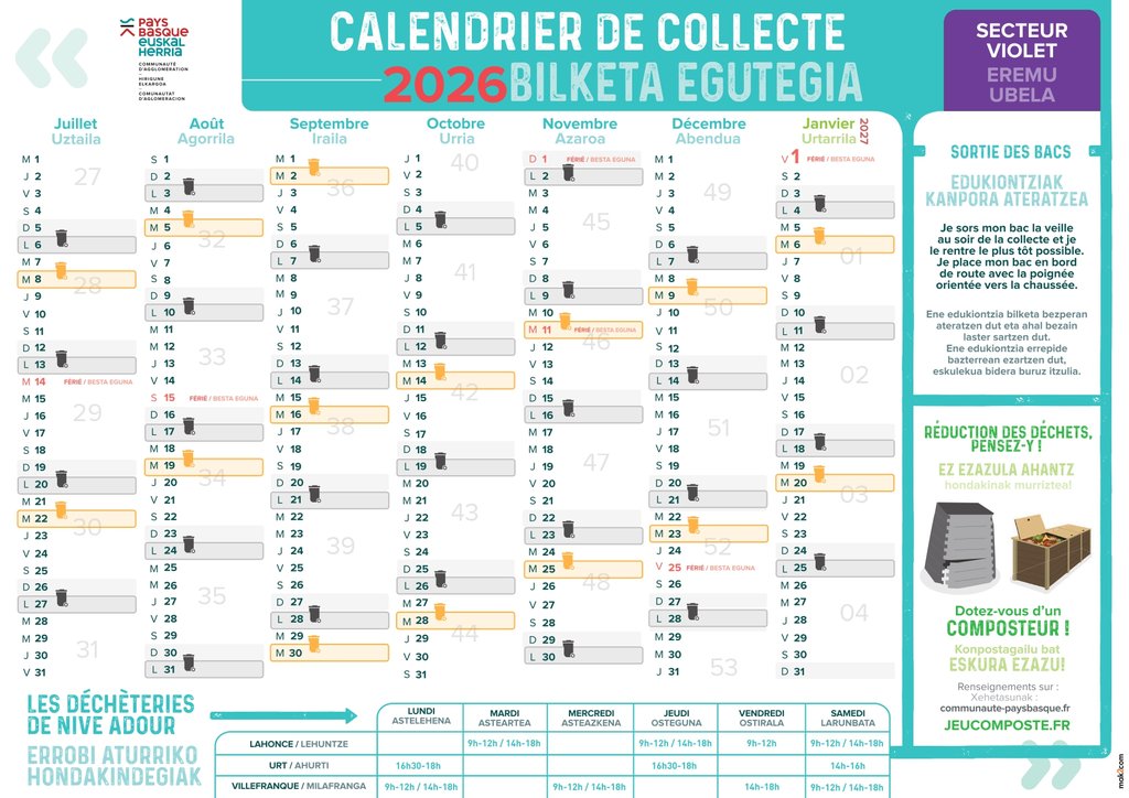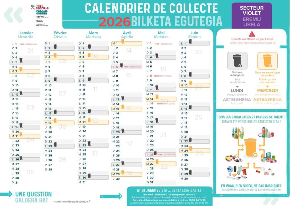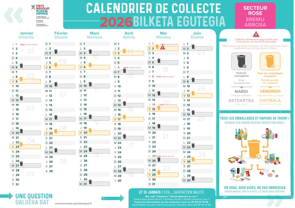 CALENDRIER DE COLLECTE DES DÉCHETS URT