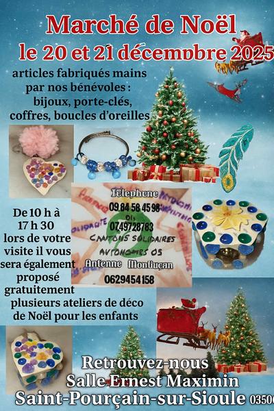 Préparez vos cadeaux de Noël à Saint-Pourçain ! Découvrez des articles uniques fabriqués main par nos bénévoles : bijoux, coffrets, porte-clés... Ateliers de déco gratuits pour les enfants pendant votre visite. Un geste solidaire pour les fêtes !