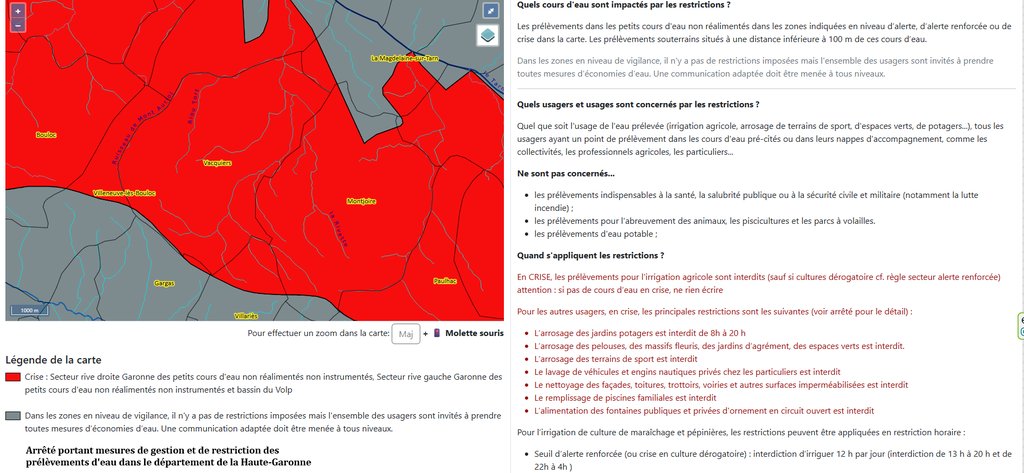 Les secteurs concernés (ainsi que des explications concernant les mesures et restrictions) sont visibles sur le site de la DDT 31 : https://atlasddt31.fr/etiages .