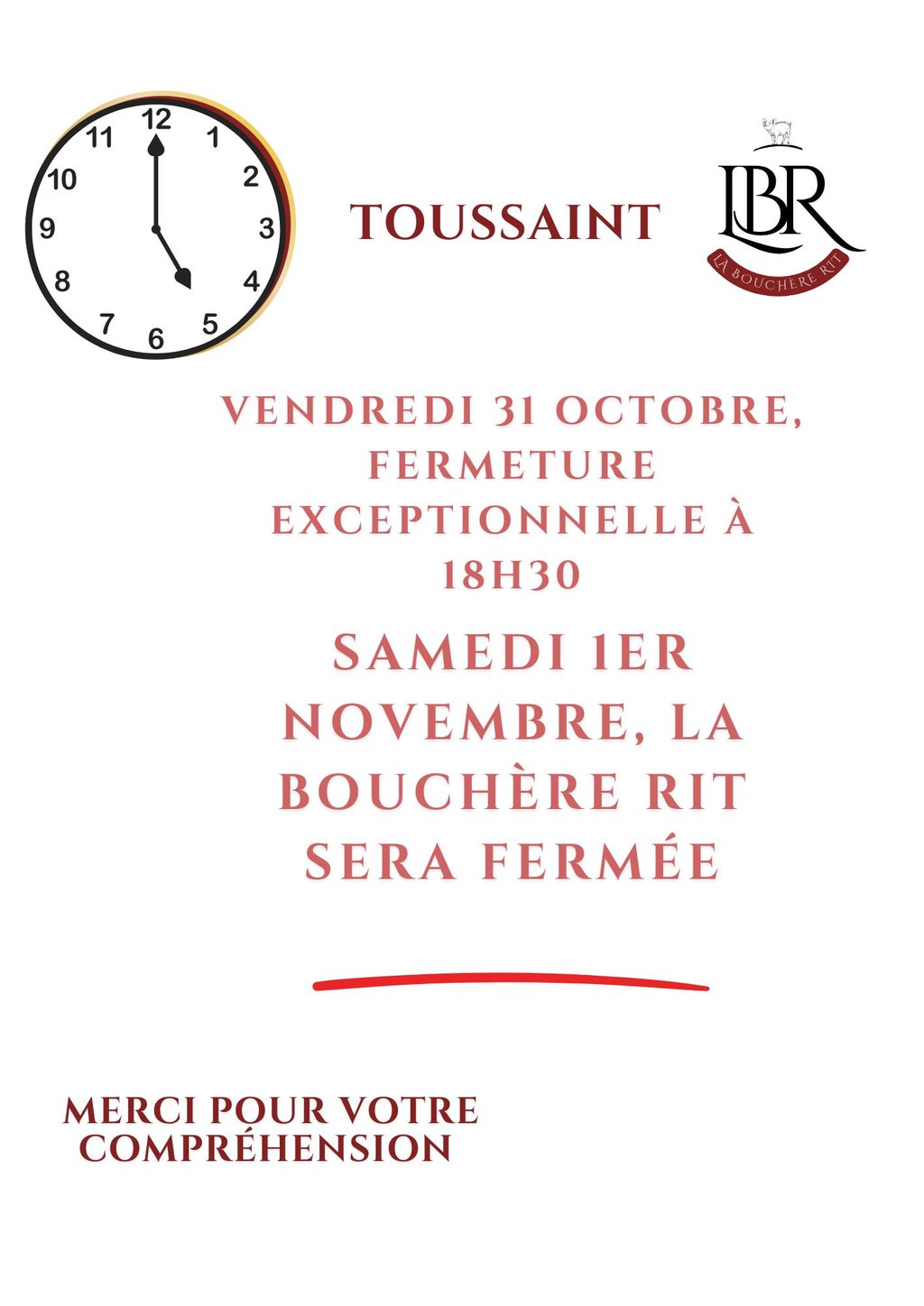 En revanche, La Bouchère Rit sera ouvert normalement le dimanche 2 novembre et les jours suivants.