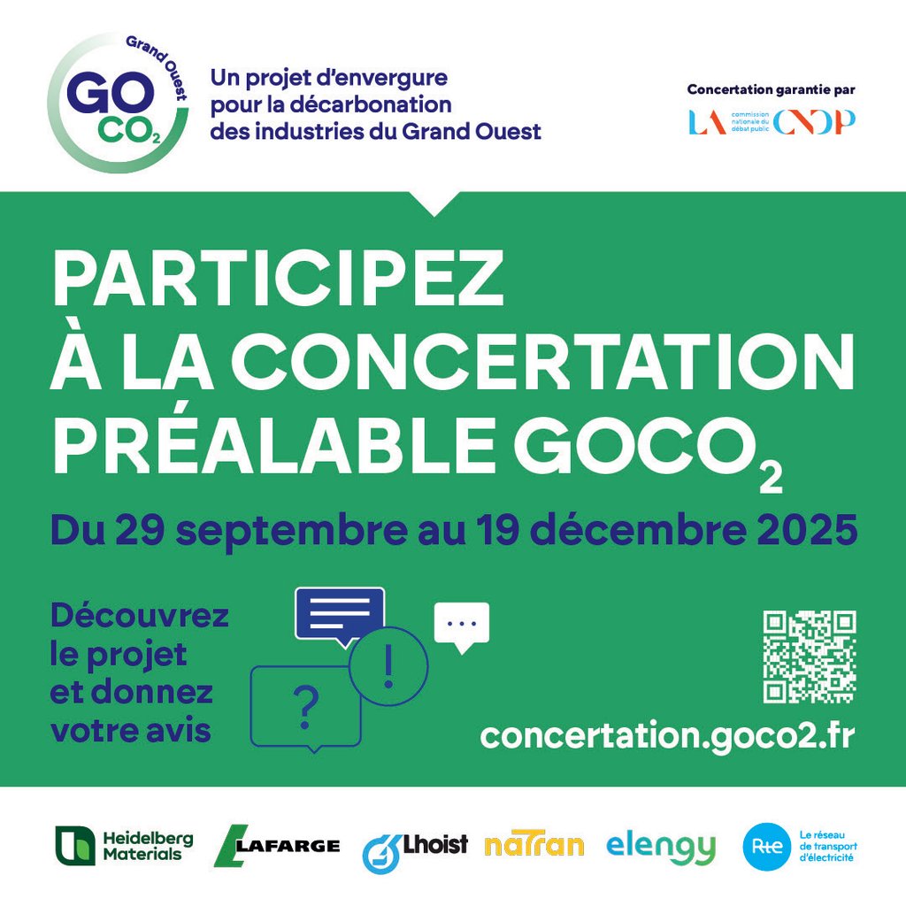 Du 29 septembre au 19 décembre 2025, participez à la concertation préalable sur le projet GOCO2, qui vise à développer une filière de captage, transport et stockage du CO2 en France.