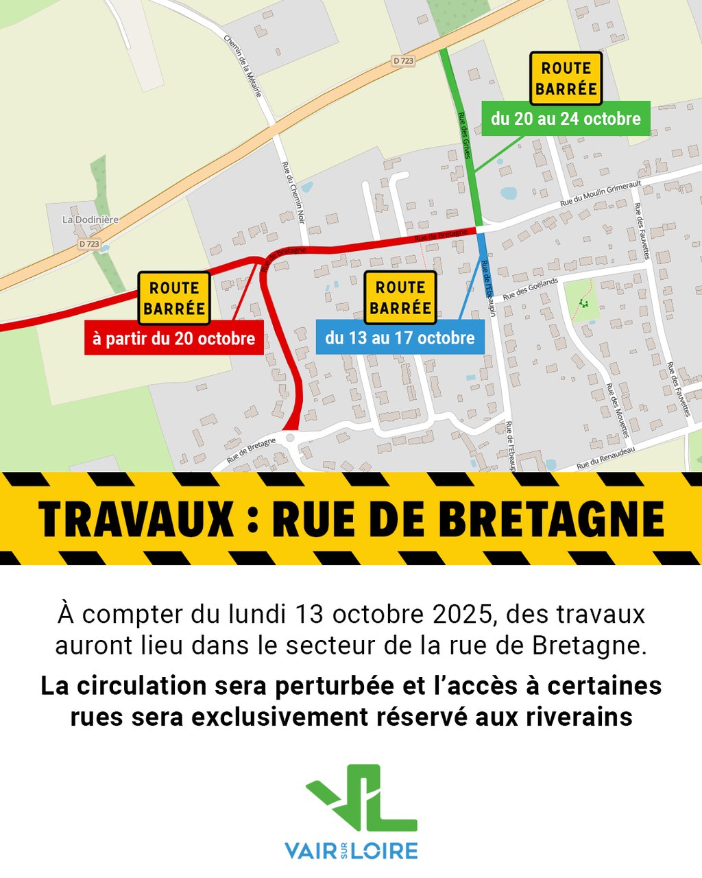 🚧 TRAVAUX DE VOIRIE – SECTEUR DE LA RUE DE BRETAGNE
