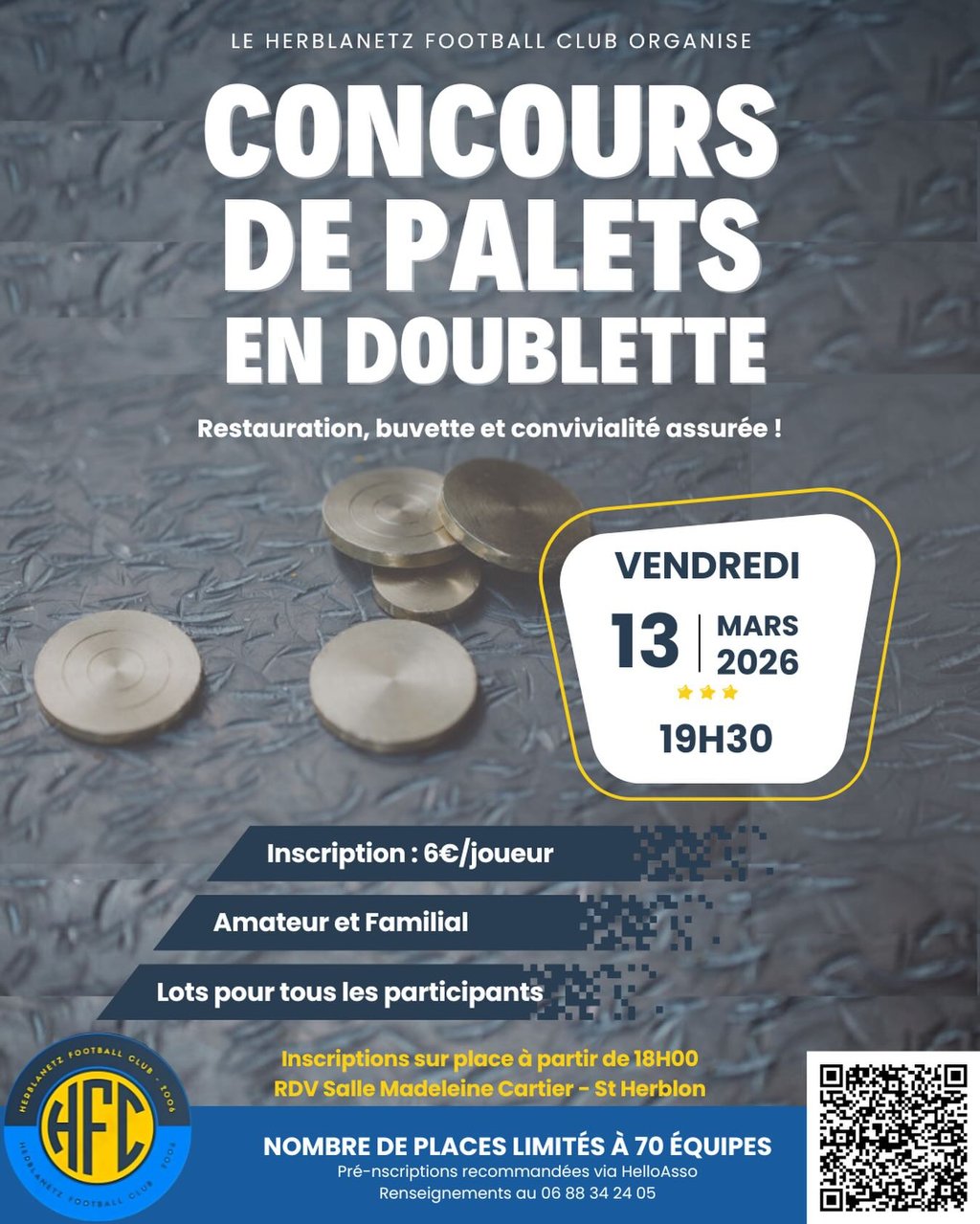 Herblanetz FC vous donne rendez-vous le vendredi 13 mars 2026 pour son concours de palets en doublette.