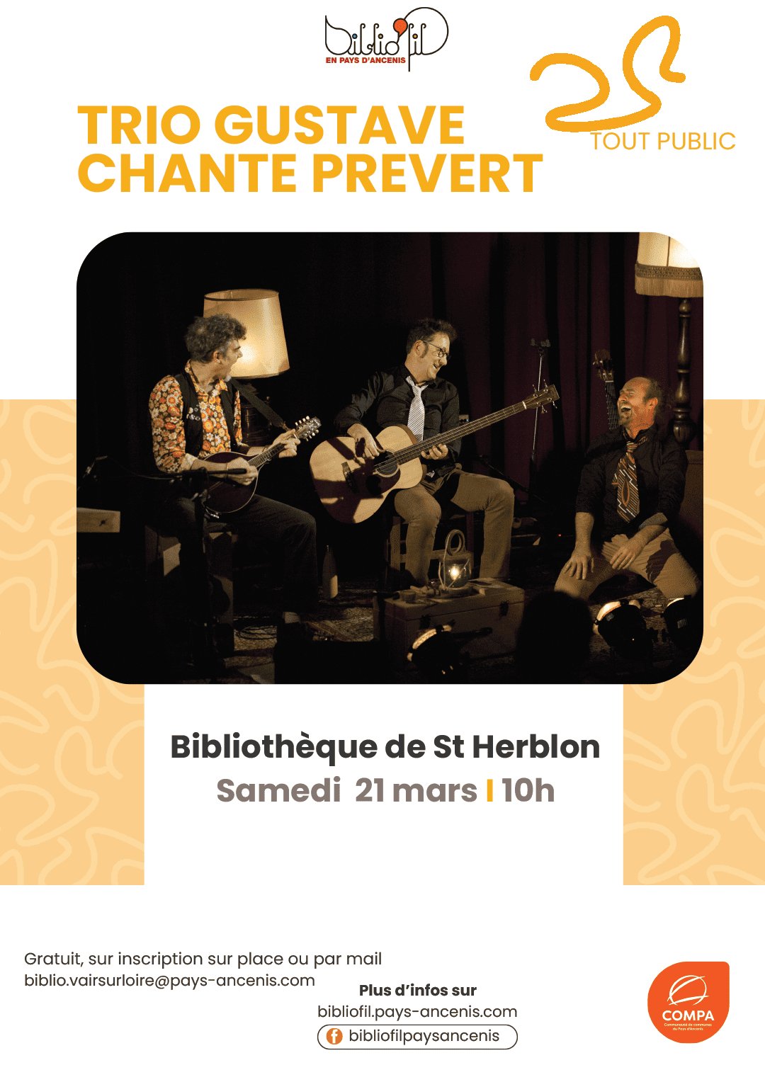 La bibliothèque de Saint-Herblon vous propose de découvrir Gustave Trio, qui revisite avec talent et sensibilité les textes de Jacques Prévert.