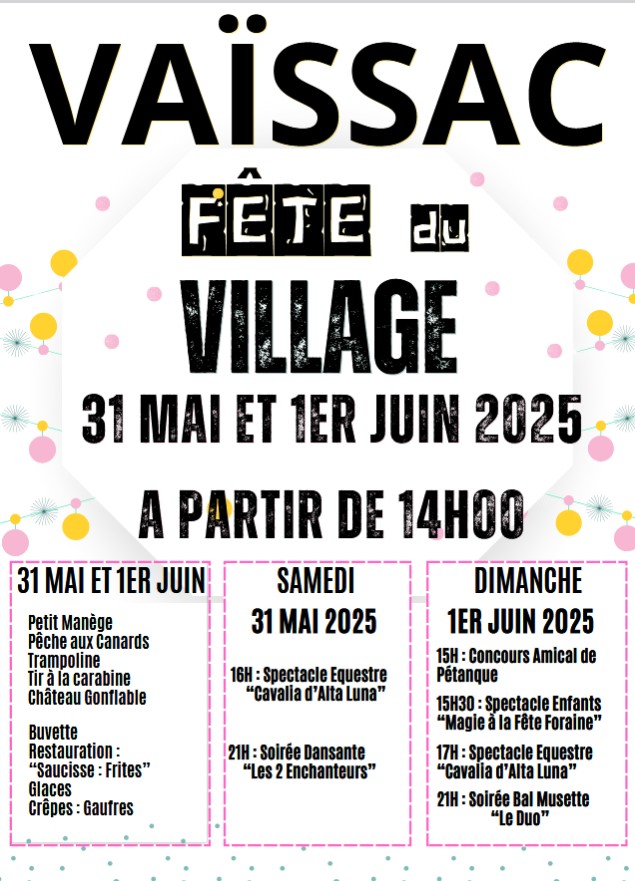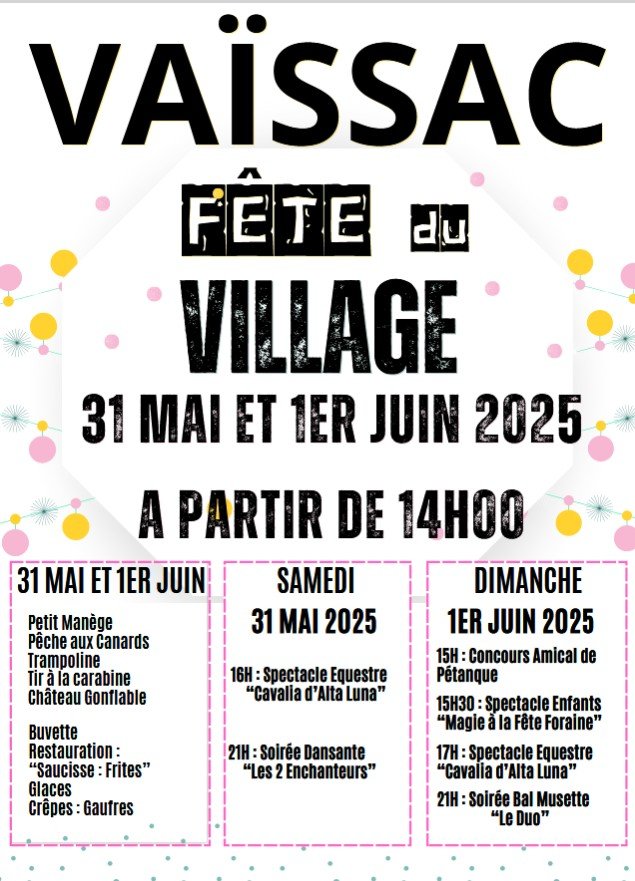 Le ComitĂ© des FĂȘtes est heureux de vous informer que la FĂȘte des Vaissagols se profile Ă grands pas đ€© (SPECTACLE GRATUIT).