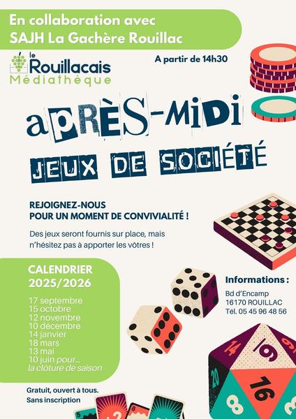 Le SAJH de la Gachère vous propose des temps de jeux à la médiathèque, de 14h30 à 16h.