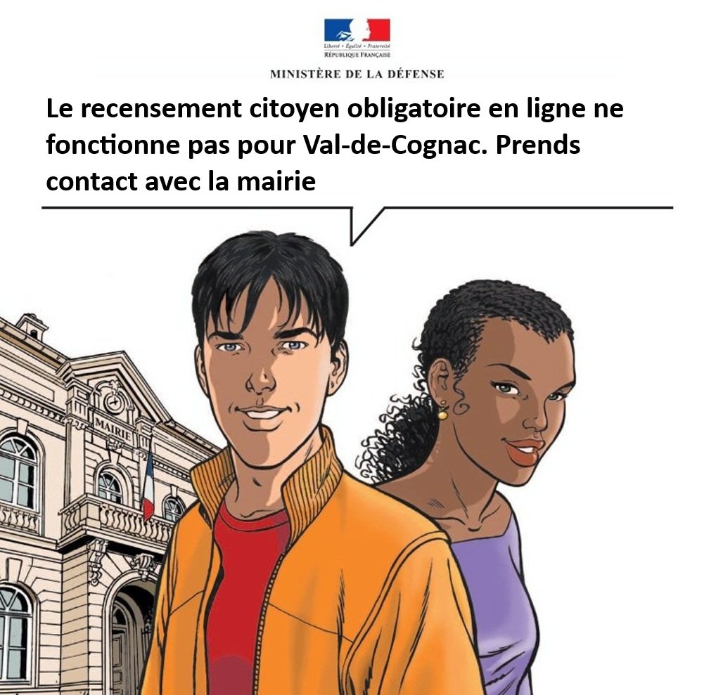Le recensement citoyen obligatoire en ligne n'est pour le moment plus accessible côté mairie pour la commune de Val-de-Cognac.