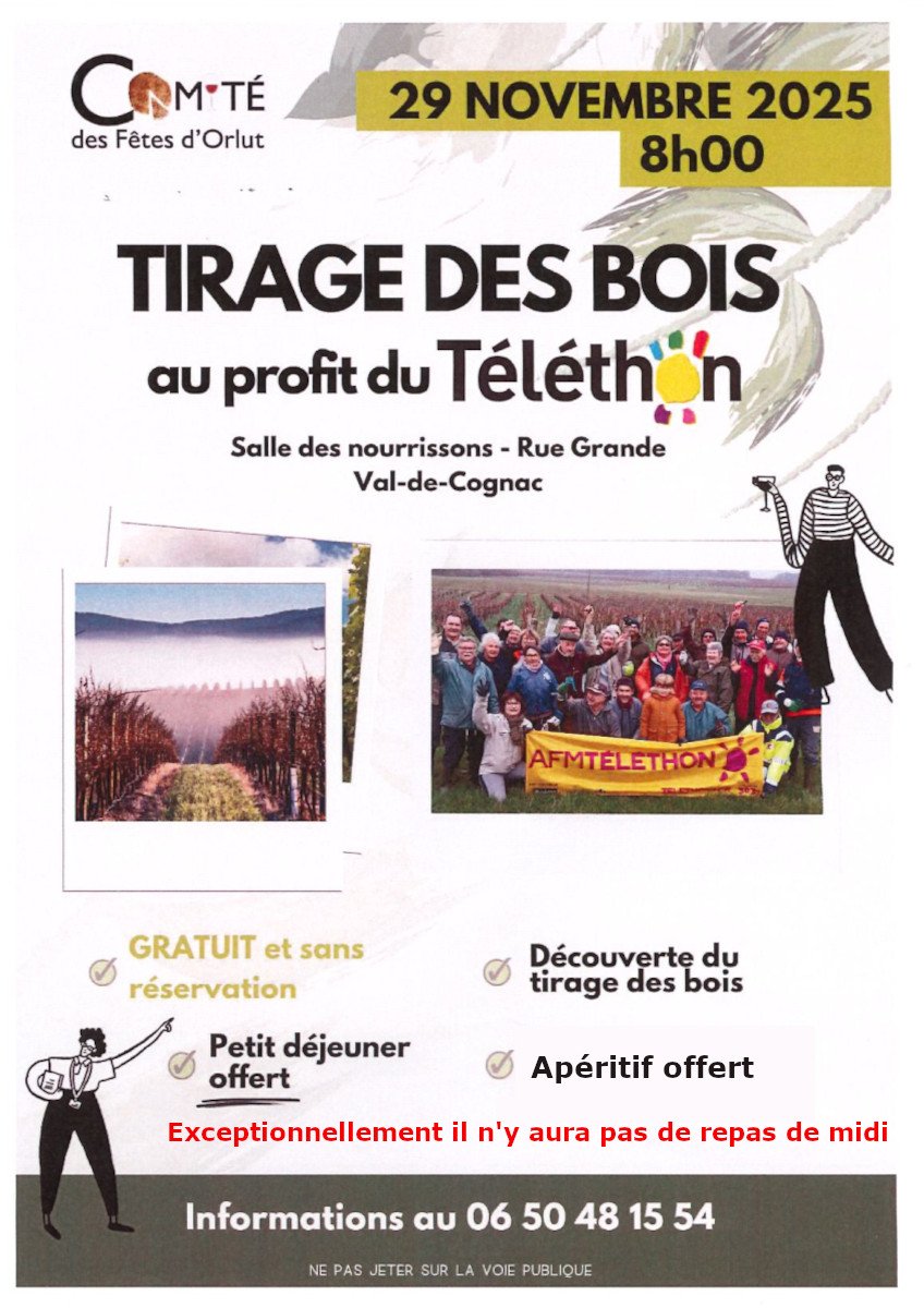 Comme chaque année, le Comité des Fêtes d'Orlut vous propose de participer au Téléthon.
