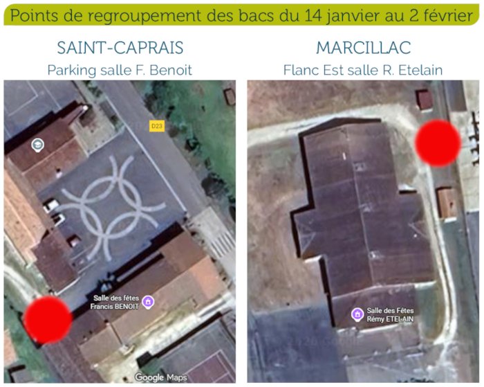 Les usagers qui souhaitent rendre leurs bacs doivent les déposer avant le 2 février aux points de regroupement ci-dessous :