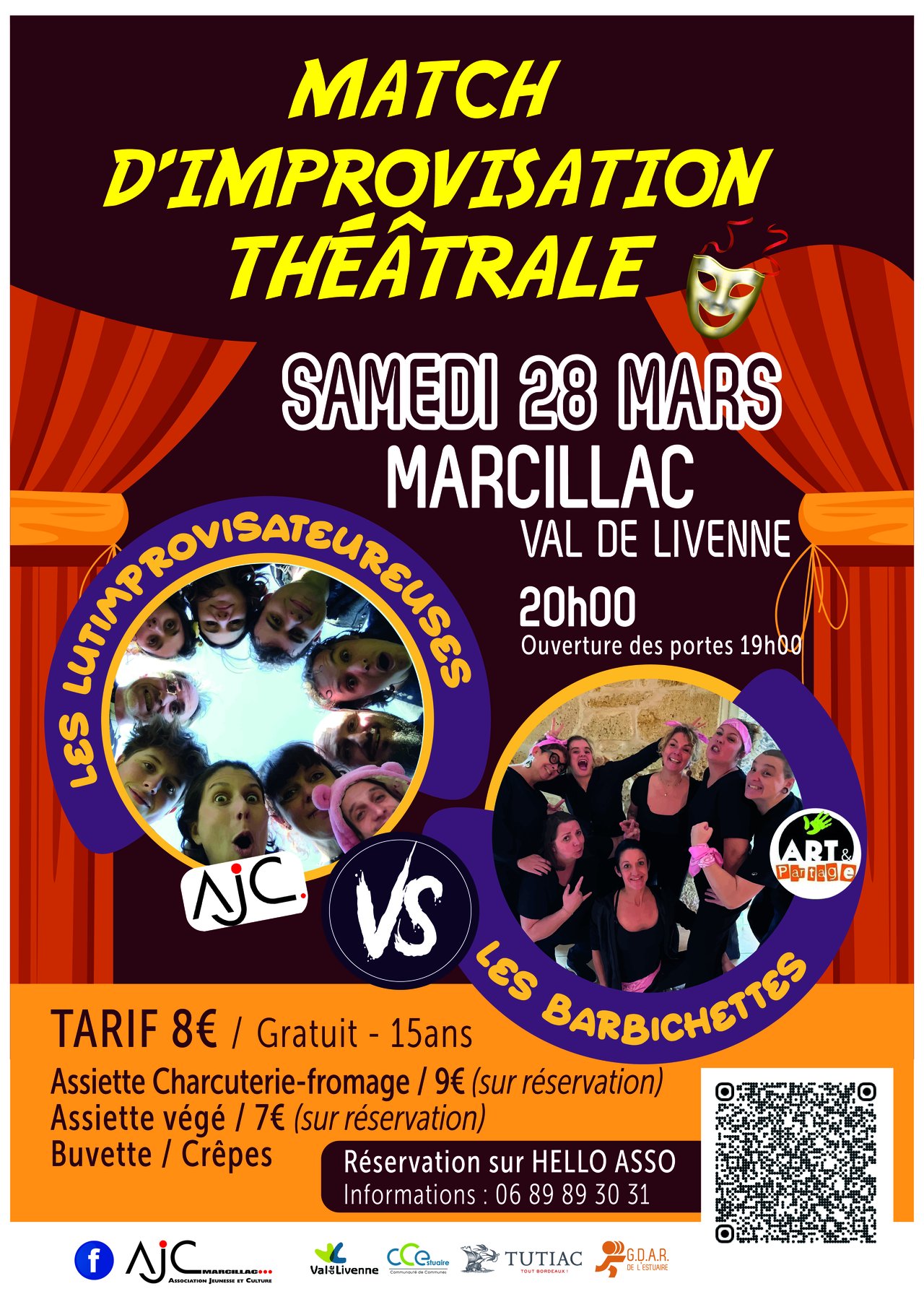 Match d'improvisation théâtrale entre "Les Lutimprovisateureuses" AJC de Marcillac et les "Barbichettes" Art &Partage de Virsac.