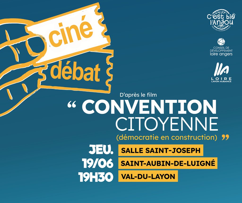 Le Conseil de développement Loire Angers et C’est Bio l’Anjou organisent un ciné-débat sur le film "Convention citoyenne - démocratie en construction" le jeudi 19 juin, à 19h30, salle Saint-Joseph à Saint-Aubin de Luigné.