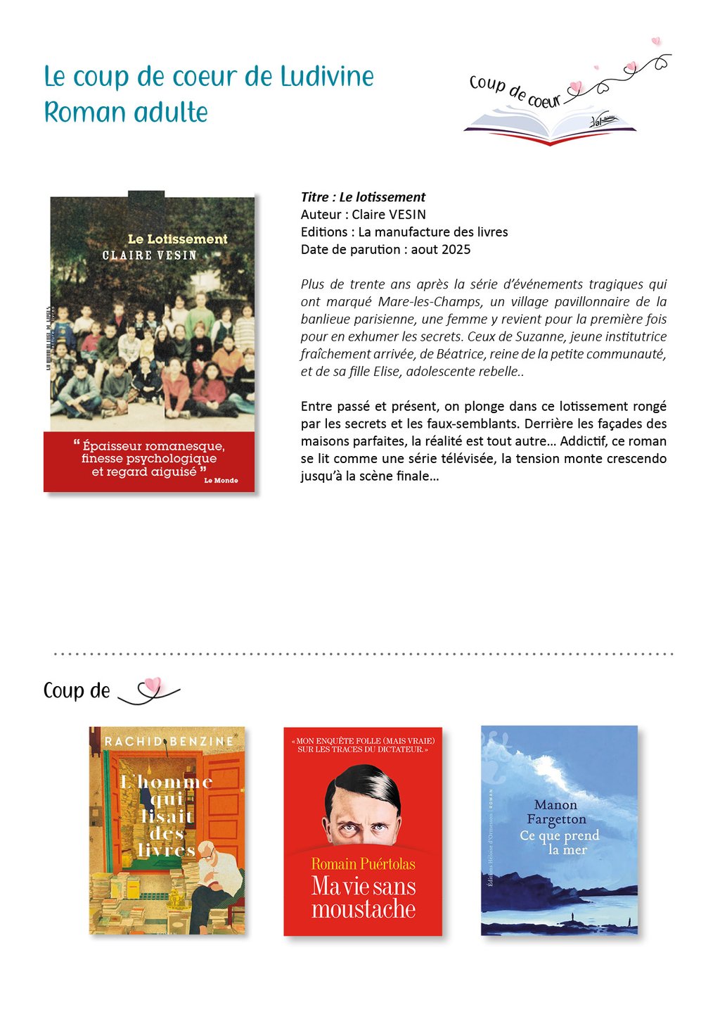 Vous retrouverez ces "Coups de coeur" sur le site de la commune, dans la partie "Culture" et "Lecture publique".