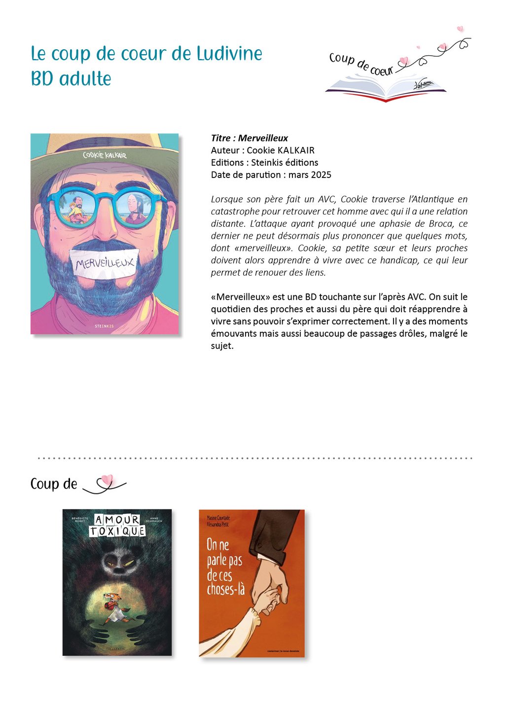 Vous retrouverez ces "Coups de coeur" sur le site de la commune, dans la partie "Culture" et "Lecture publique".