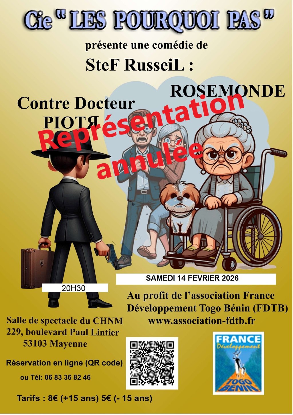 L'association France Développement Togo Benin vous informe de l'annulation de la représentation théâtrale prévue le samedi 14 février.