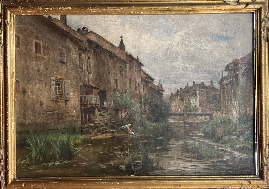 Le natif de l’étape a installé son chevalet rue Wessval et immortalisé une scène simple et touchante : une Raonnaise lavant son linge dans le cours d’eau.