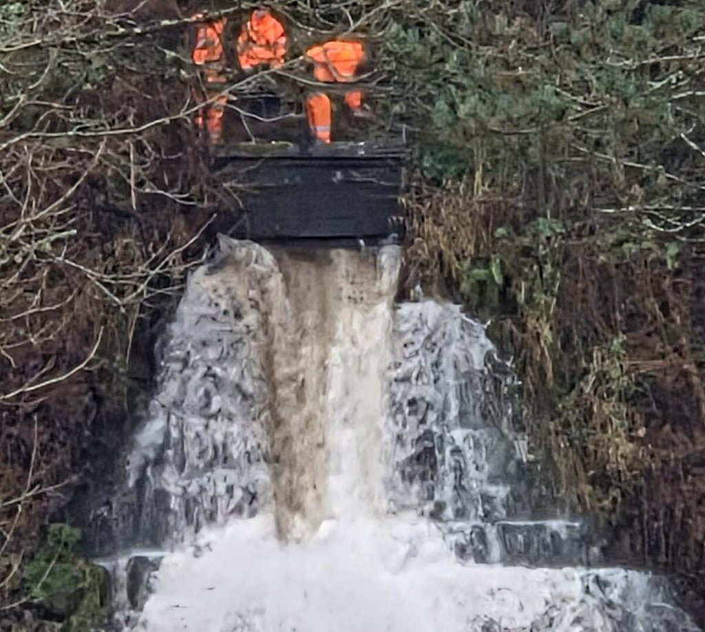 DES FEUILLES BLOQUENT L’ÉCOULEMENT DE LA CASCADE
