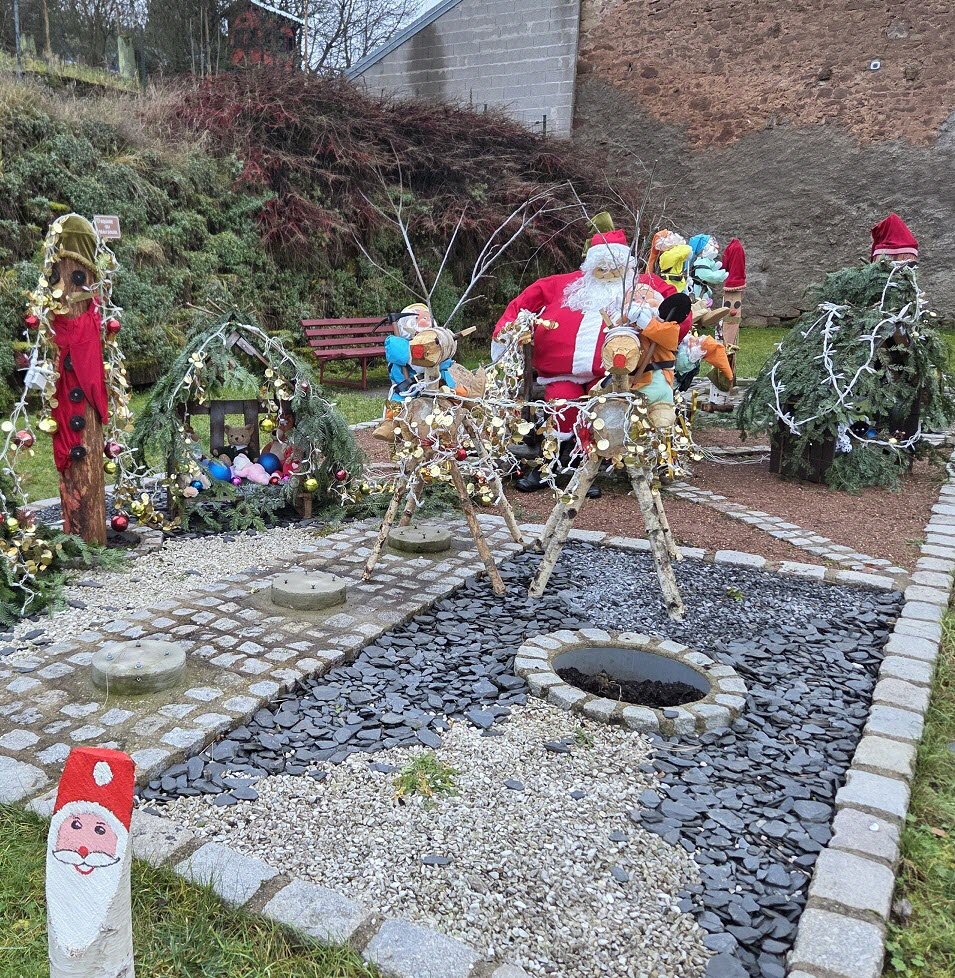 Lionel Frappart, conseiller municipal, a débordé d’imagination pour concrétiser ce projet. Conseillers municipaux, bénévoles et services techniques se sont mobilisés pour fabriquer les chalets avec des palettes. Un appel au don de peluches a été fait avec succès. Ces dernières ont été triées avec minutie par thèmes. Toutes les pièces étant réunies pour décorer les deux massifs, il a fallu une journée pour poser les chalets, les peluches et les guirlandes lumineuses permettant de finaliser le projet. Toutes ces décorations de Noël ont été réalisées avec des matériaux de récupération.