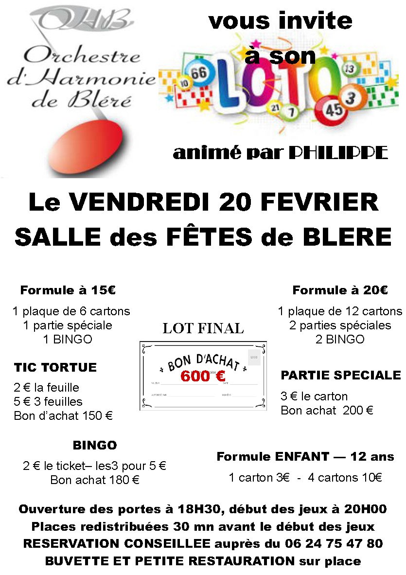 🎉 Loto de l'Orchestre d'Harmonie de Bléré 🎶