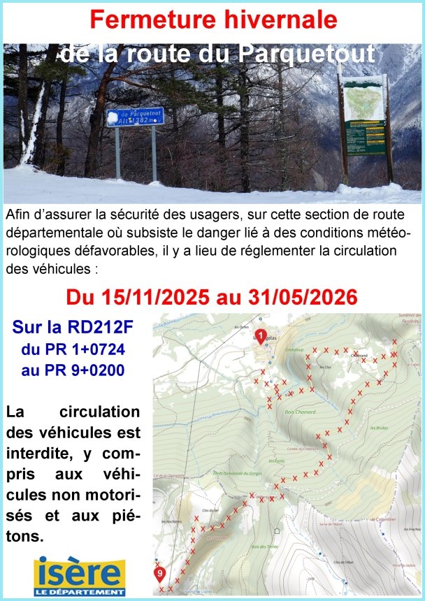 FERMETURE HIVERNALE DE LA ROUTE DU COL DU PARQUETOUT