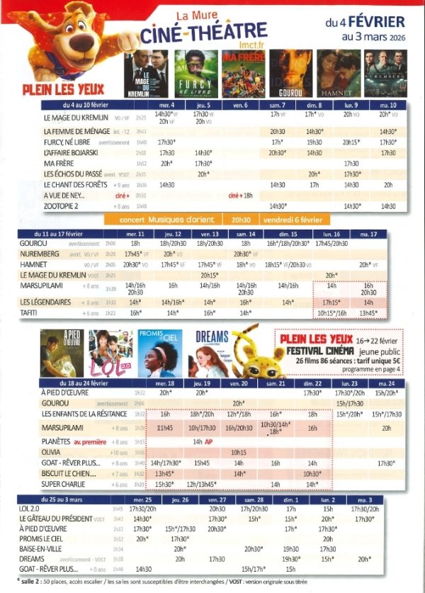 PROGRAMMME DE LA MURE CINE-THEATRE DU 04/02 AU 03/03/2026