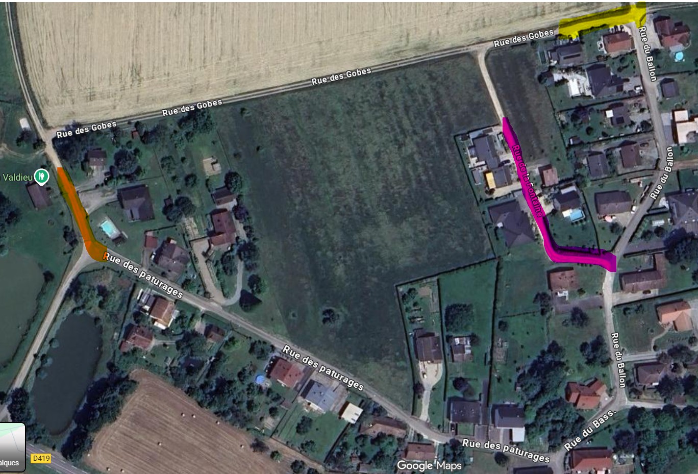 - Les habitants de la rue de la Fontaine (4 foyers) sont invités à positionner leurs poubelles à l'intersection de la rue de la Fontaine et de la rue du Ballon, coté droit également en montant la rue.