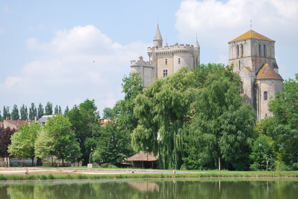 L’église romane, édifiée entre la fin du 11ème siècle et le début du 12ème siècle, est située sur un promontoire et forme avec le château médiéval un ensemble majeur du bourg. L’édifice a été modifié à l’époque gothique. Le chœur repose sur une crypte romane ornée de peintures murales gothiques représentant le Christ en majesté entouré des symboles des évangélistes et une Vierge à l’Enfant. L’église abrite aussi des enfeux gothiques qui accueillaient les sépultures des seigneurs de Morthemer. C’est aussi dans cette église que le Connétable anglais John Chandos, blessé mortellement lors d’un combat franco-anglais au pont de Lussac en 1369, aurait été enterré.