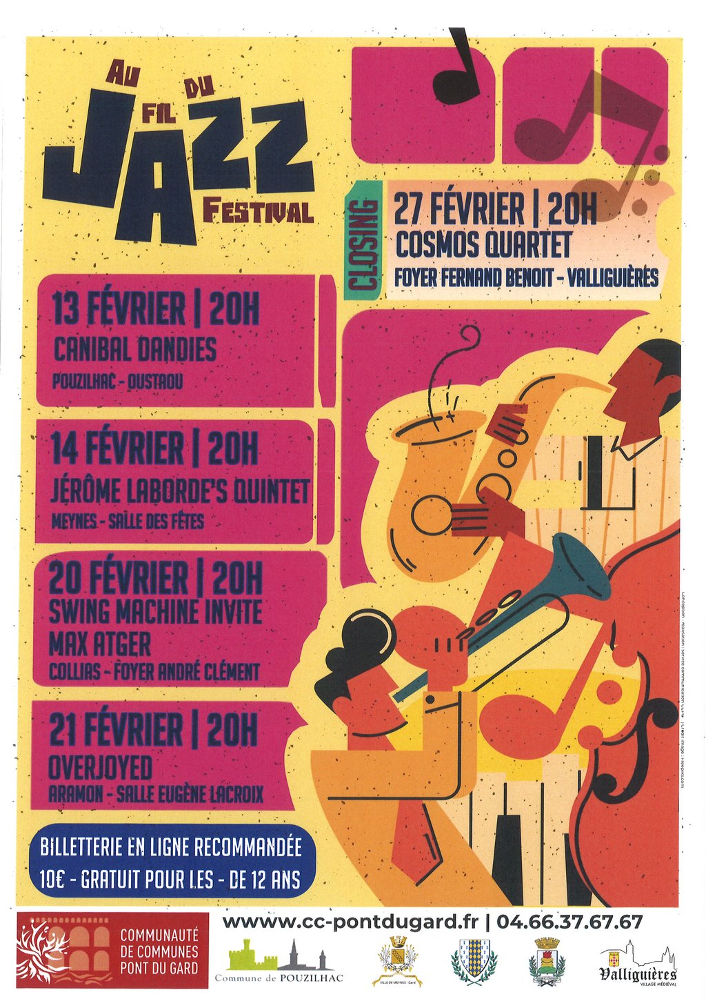 Voici le programme 2026 du festival 'Au fil du Jazz'. Le concert de fermeture se déroulera à Valliguières le vendredi 27 février à 20h au foyer Fernand Benoit.