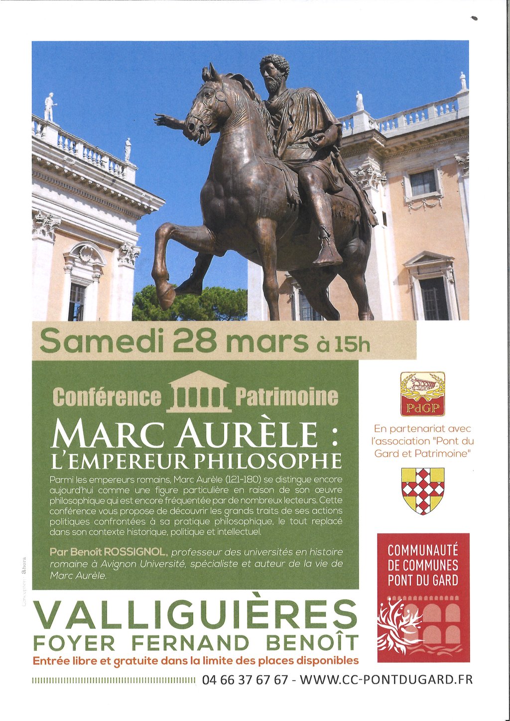 CONFÉRENCE MARC AURÈLE : SAMEDI 28 MARS 15H. FOYER FERNAND BENOIT.