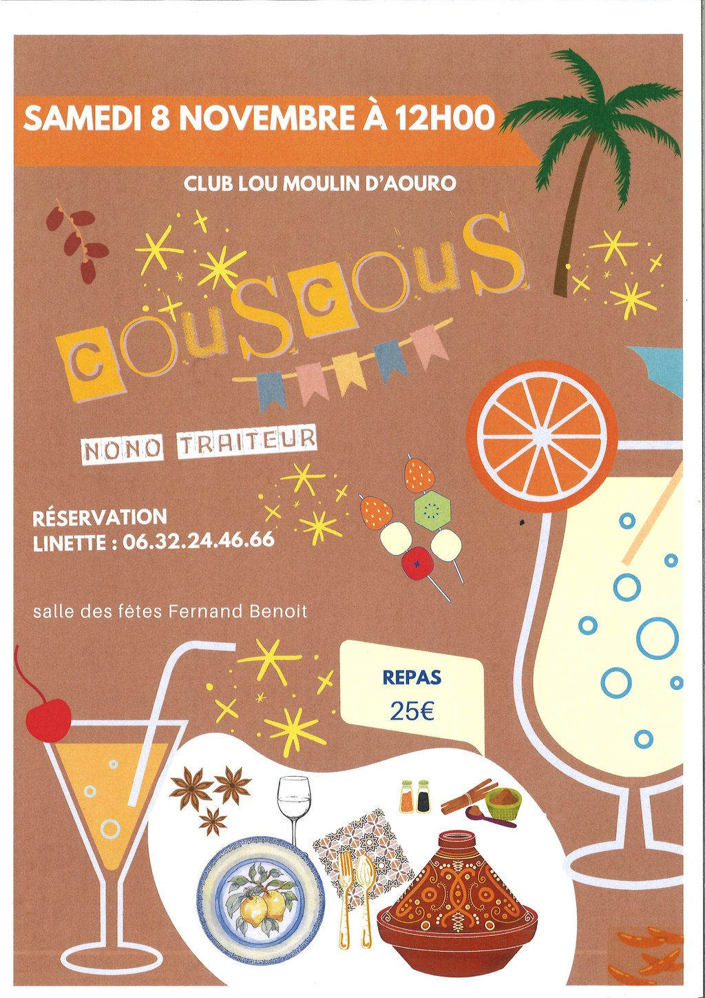 Samedi 8 novembre : couscous du club des ainés Réservation 06 32 24 46 66.