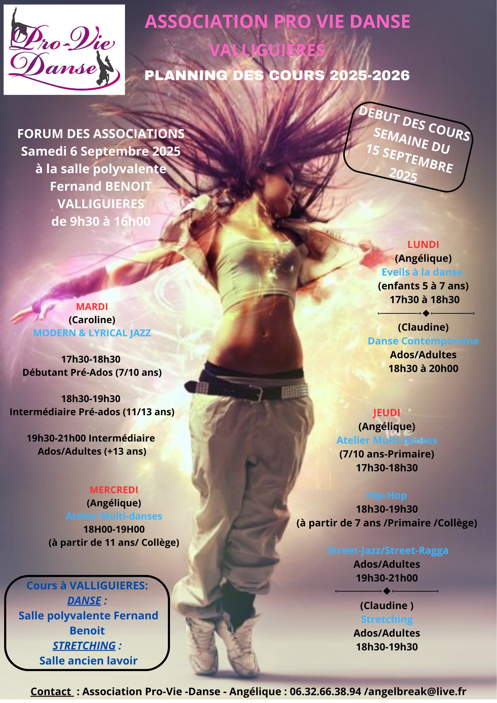Cours de danse : éveil, modern jazz ( 3 niveaux), ragga, hip hop, contemporain