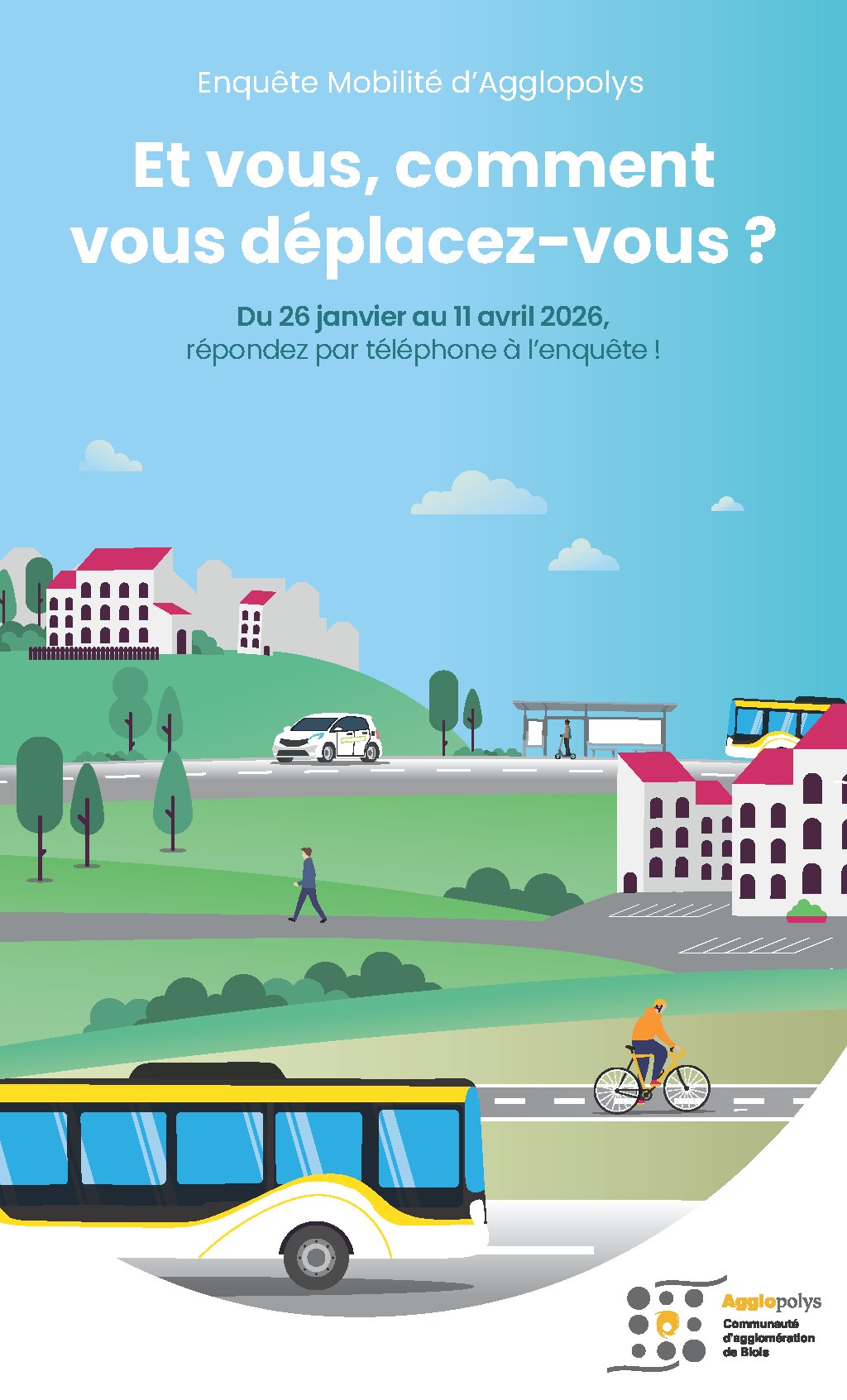"L'Enquête Mobilité" d'Agglopolys se déroulera du 26 janvier au 11 avril 2026,. Un échantillon représentatif de foyers du territoire d’Agglopolys, 2 040 personnes au total, sera contacté par téléphone.