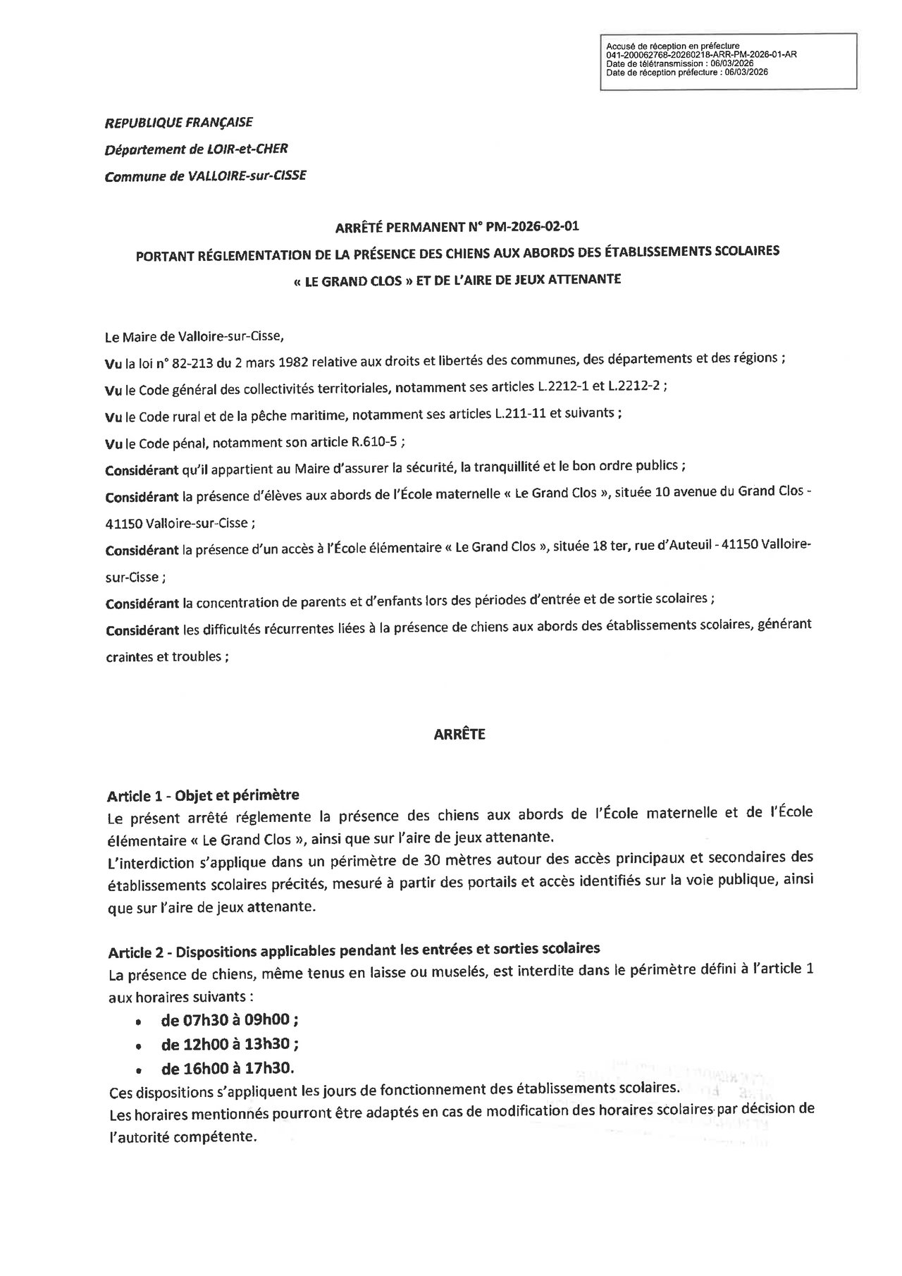 ARRÊTÉ MUNICIPAL RELATIF AUX CHIENS AUX ABORDS DES ÉCOLES « LE GRAND CLOS »