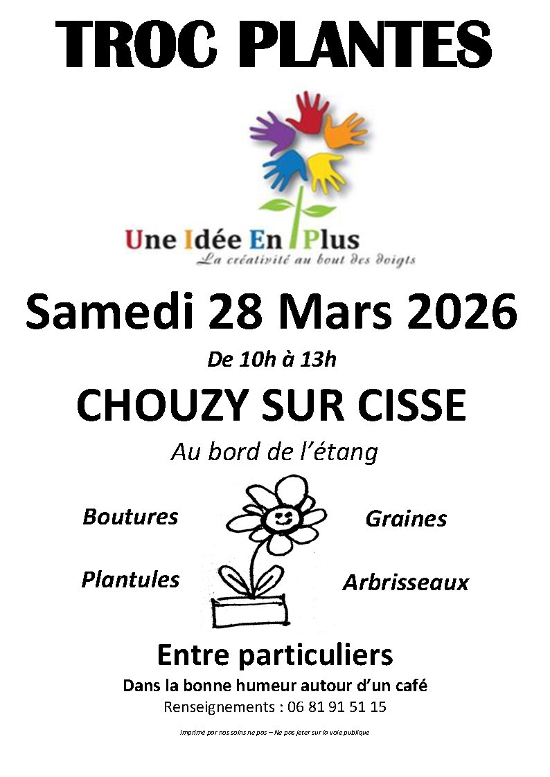 Une idée en Plus organise son Troc Plantes entre particuliers au bord de l'étang de Chouzy-sur-Cisse le 28 mars de 10h à 13h