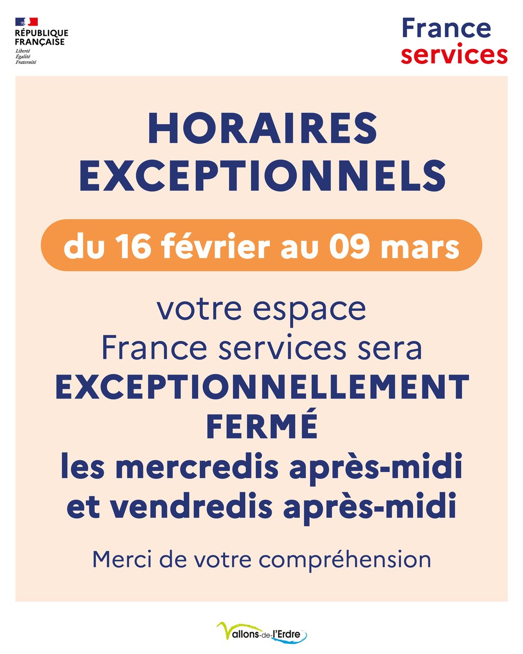 HORAIRES EXCEPTIONNELLES DE L'ESPACE FRANCE SERVICES