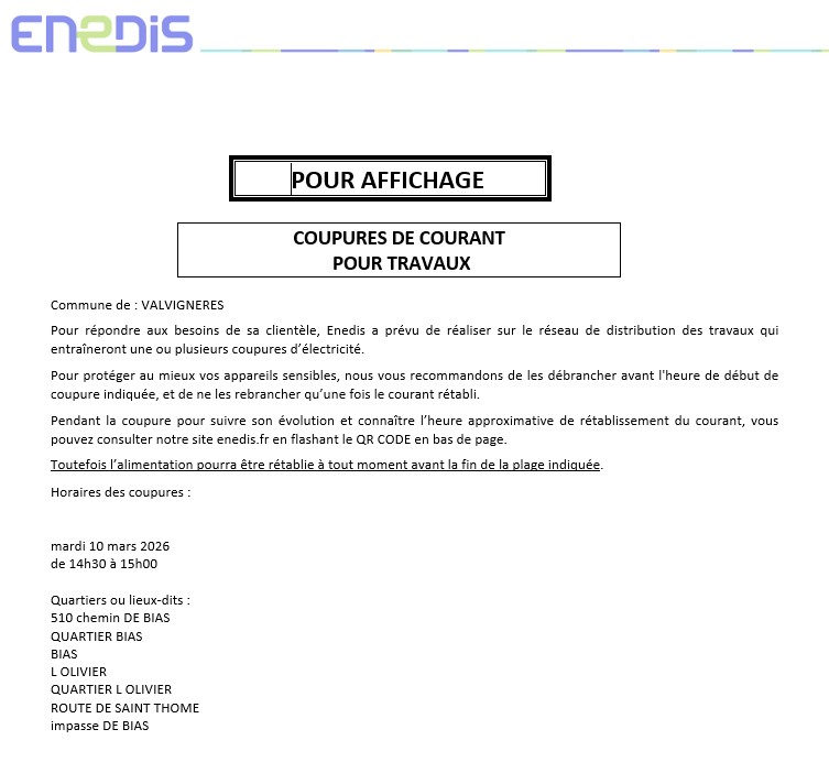 Coupures de courant pour travaux - ENEDIS